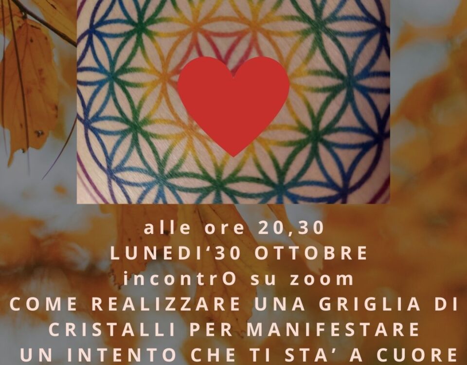 Durante l’incontro, lavoreremo insieme, utilizzando la Geometria Sacra del ‘Fiore della vita’. Ogni partecipante riceverà uno schema da stampare ed eventualmente plastificare e consigli personali per […]